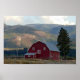 Afternoon sunshine brightens the Absaroka Mountains behind a red barn near Bozeman, Montana. Beyond the mountains is Yellowstone National Park in Wyoming. The Absarokas are part of the Rocky Mountains.