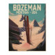 Bozeman Montana ski poster in a detailed and beautiful vintage style, featuring an illustrated backdrop of the beautiful landscape.