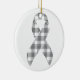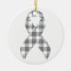 Brain Cancer Awareness Plaid Gray Ribbon Survivor Ceramic Ornament
