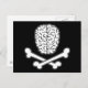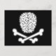 A skull and crossbones flag emblem for the smartypants pirate, with a brain over a pair of crossbones. Gray/white art, on t-shirts, hoodies, cards, gifts.