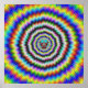 A colorful psychedelic fractal image with an optically challenging circular design in yellow blue red and turquoise. With Bug as a placeholder for your own image. As well as posters this design is also available on most other products.