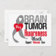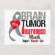 Brain Tumor Awareness Month T-Shirts and Gifts in cool grunge distressed style with draped gray ribbon and red heart to commemorate Brain Tumor Awareness Month in May.
