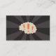 Business card featuring a brain with orange exclamation marks on a dark sunburst background.