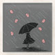 Brainstorm pun with the silhouette of a girl walking with an umbrella during a storm-- with brains.