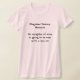 My overall review is that the T-shirt is nice, it fits true to size however the font is significantly smaller than advertised and you can't read it. The printing is unreadable and there is a strain to read it. It does not look like the advertised product. Maybe the shirt color is darker or a larger more visible font should have been used. Photos with and without flash and font is barely legible.