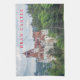 A panoramic view of Bran Castle often referred to as Dracula Castle in Transylvania in Romania printed on a souvenir tea towel.