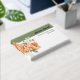 This gold foil wedding guest book features a design of peach roses, white flowers, and green leaves on a branch. The left side of the book is adorned with this lovely floral arrangement. A sage green border adds a touch of sophistication to the top of the guest book, complementing the soft colors of the flowers. The cover is further enhanced by bold typography made of gold foil.
