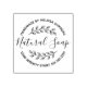 Natural soap stamp with circular lettering and hand-drawn leaves wreath. Please note, you may need to adjust the information you enter by adding or deleting some characters or spaces, to make the text properly aligned.