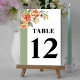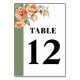 Branch with pipeach rose flowers and leaves wedding Table Number. This wedding table number card showcases a beautiful branch adorned with peach roses and delicate leaves. There is a sage green border accentuating the left of the card adding a touch of elegance to the overall look. The centerpiece of the card is the bold typography displaying the table number, making it easy for guests to locate their assigned table. The cover has been designed using some assets from Freepik.com