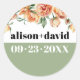 This circular wedding sticker showcases a delicate branch adorned with soft peach roses and sage green leaves positioned at the top. The addition of sage green accents at the bottom enhances the sophistication of the entire design, perfectly harmonizing with the bold typography of the sminimal yet elegant text. The cover has been designed using some assets from Freepik.com