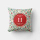 This colorful and delicate pillow makes a great gift for a family. The background features a festive pattern with berries, branches and leaves perfect to celebrate the season. The center circle includes a monogram with the family initial.