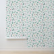 A delicate pattern featuring a variety of green leafy branches, pine needles, and berries. The design showcases a combination of vibrant greens, soft pinks, oranges, and yellows scattered across a clean white background. This nature-inspired composition brings a fresh, organic feel with its mix of botanical elements, creating a peaceful and airy vibe.