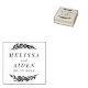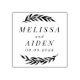 Textural and leafy branches frame two names and a date making this ink stamp a modern monogram to place on welcome bags, favors and more.