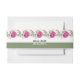 This elegant wedding invitation belly band features a beautiful display of branches adorned with delicate pink roses, white flowers, and lush greenery at the top. The couple's names are showcased in a bold and sophisticated typography, adding a touch of class to the design. To enhance the overall aesthetic, a subtle yet stylish sage green band is placed at the bottom, completing the look with a hint of elegance.