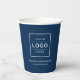 A classic navy blue paper cup designed for businesses to brand with their own custom logo, business name, location, slogan, and website. The rich navy background with a clean framed logo placement creates a polished serving solution for office break rooms, customer waiting areas, trade shows, corporate events, or branded hospitality. All text fields and the uploaded logo are fully customizable.