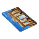 A photograph of the Brandenburg Gate in Berlin taken at blue hour on a beautiful sunny evening is featured on this souvenir magnet.