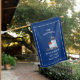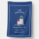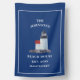 Coastal Nantucket Beach House Blue Background Brant Point Lighthouse Family Name House Flag. Personalize this custom design with your own family name, year established, island location. The perfect Nantucket house flag for your family cottage, or beach house.