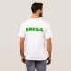 Brasil tee. Bold text of the word Brasil on back of shirt in the Brasilian colors of green and yellow. The front of shirt has a small circular symbol of the Brazilian flag. Unique and cool Brazil clothing and more.