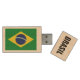 Brasilian flag USB pendrive flash drive. Flag of Brasil pride design. Custom wooden pen drive personalizable with your 3 letter country abbreviation, name, monogram or quote. Fun monogrammed promotional item personalizable with name or monogram on the back side optional. Novelty school supplies / office supplies for home and corporate business company. Nice promo give away gift idea too. Pen drives available in different memory sizes for your data and pictures. Change the quantity to get the cheapest price per USB stick. Vintage wood design. Available for many international nationalities. Brazil / Brazilian pride.