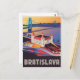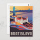 Step into the historic charm of Bratislava with this vintage-style postcard featuring the iconic Bratislava Castle perched above the city. The design captures the timeless beauty of Slovakia’s capital, blending its medieval heritage with picturesque views of the Danube River. A perfect keepsake for collectors of European vintage travel art.