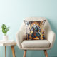 Brave Cat Knight in Medieval Setting Throw Pillow