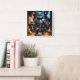 Brave Feline Knight in Fiery Fantasy Setting Square Wall Clock