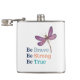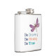 Well made flask, a little better than I had expected. Flask came in clear plastic box which gave it a nice presentation when I took it out of the zazzle packaging. Image is not printed on flask but on sticker. Don't know how this will hold up I haven't used it yet. This would make a Great gift! I plan to purchase more for friends! Cheers. I thought a little brighter than computer. Very crisp, writing wasn't