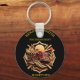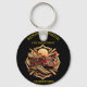 This custom keychain features a Fire Department's Badge of Honor design, set against a striking black and red background. The badge is adorned with two fire axes, symbolizing bravery and heroism, and is held by a silhouette of a fireman in action.