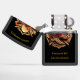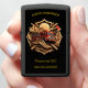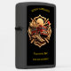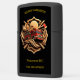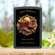 This custom Lighter features a Fire Department's Badge of Honor design, set against a striking black and red background. The badge is adorned with two fire axes, symbolizing bravery and heroism, and is held by a silhouette of a fireman in action.