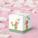 Whimsical rhinoceros on a unicycle and carrying a flag pole (which on the green flag you can add your own initial on) and carrying two balloons around the bike seat post and elephants balancing on a big colorful circus ball. Cute thank you favor boxes, ideal for unisex baby shower thank you's. Boxes read on top Bravo! Thank you with heart shaped balloons. Original whimsical animal hand watercolor art painting and design by Sarah Trett. www.sarahtrett.com for www.mylittleeden.com