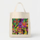 The printing came out very well, better than I had anticipated. The natural color fabric is sturdy with strong seams and comfortable handles. This tote fits easily over my shoulder. As it is filled, the bottom flattens out--very cool! I would buy this product again. This grocery tote holds a lot of groceries! The image quality was very good. The colors were a little darker than I had expected. The darkness may have been due to printing on a natural color fabric rather than on white. The cat design is attractively centered on the tote. The spirit of the design is very lively, just as it appears on the Zazzle website.