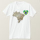 A heart shaped Brazilian flag is placed next to a relief map of Brazil on this distinctively patriotic t-shirt.