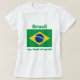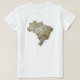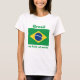 On the front of this shirt an editable title and slogan accompanies the Brazilian flag with its blue disc within a yellow rhombus on green. The back displays a detailed map of Brazil.