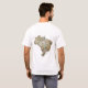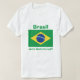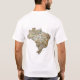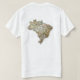 An editable title and slogan accompanies the blue disc on a yellow rhombus on a green background of the Brazilian flag on the front of this t-shirt. The back displays a detailed map of Brazil.
