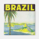 Vintage travel poster for Brazil, showing Rio De Janeiro's Sugarloaf Mountain and Guanabara Bay.