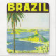 Vintage travel poster for Brazil, showing Rio De Janeiro's Sugarloaf Mountain and Guanabara Bay.