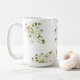 Stylized Green White Brazilian holly / Christmas berry tree / pepper hedge leaves Pattern Coffee / Tea Mug / Cup to add to your home / office / business decor collection. A cool gift / present for all who love nature, planet, organic theme, positive vibes, bright colors, minimalism, plants, trees, planet etc. Structure, texture, light, sell, leaf. Change the background color to suit your own taste, style and needs.