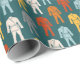 This patterned wrapping paper is perfect for wrapping up gifts for fans of Brazilian Jiu Jitsu or BJJ. Whether they're studying BJJ or are an instructor of this martial art form they'll appreciate the colorful pattern of this gift wrap which features illustrations of a BJJ gi or uniform in shades of orange, light blue, golden yellow, cream and gray against a teal colored background.