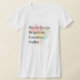 The material is a great quality that is hard to find with most tee shirts. Fabric was not see-through or thin at all, but was also very soft and comfortable. The shirt description states that it runs a little small, so I sized up one size for a perfect fit! I would definitely buy this type of tee shirt again because I love the fit and high quality fabric that I cannot find anywhere else. The printing was perfect and just as pictured. Loved the cute quote and really enjoy the tee in both the quality and design. I love quirky typography designs and funny quotes and I am extremely pleased with the overall quality and value I get at Zazzle!