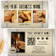 A very versatile business card featuring your custom images on a stylish design in light earth colors. You can add your custom logo and on the back your QR code. Also 3 social media icons are available. You can choose which templates you like to keep according to your needs. Beautiful for a bakery or café and customizable for other purposes.