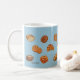 Mug with cheerful bread drawing design. The background is customizable. You can choose your favorite color. This coffee mug with 17 different original bread and pastry drawings will brighten your morning and afternoon. Makes a great gift for yourself or others for any occasion.