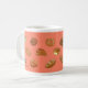 Mug with cheerful bread drawing design. Salmon pink background. This coffee mug with 17 different original bread and pastry drawings will brighten your morning and afternoon. Makes a great gift for yourself or others for any occasion.
