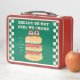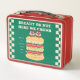 This is a standard metal lunchbox that appears to work just fine. We designed this box ourselves with an uploaded photo and custom text on the front and back. It looks absolutely beautiful except the front of the lunchbox is not centered like it shows in the photo. The print borders don't align with the inset flat part of the box where the preview photo online showed it perfectly centered in there. The back looks nice and centered though.