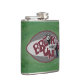 Well made flask, a little better than I had expected. Flask came in clear plastic box which gave it a nice presentation when I took it out of the zazzle packaging. Image is not printed on flask but on sticker. Don't know how this will hold up I haven't used it yet. This would make a Great gift! I plan to purchase more for friends! Cheers. I thought a little brighter than computer. Very crisp, writing wasn't