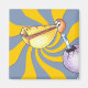 The design on this Square Magnet is a cartoon bird with an unusual beak, an orange head and blue and white stripes on it's neck. He's breaking free of his purple egg shell. Derwint coloured pencil illustration. Click the customize button to add text and personalize. Other than the blue swirl, there are 7 other coloured background swirls to choose from. The yellow swirl can be changed to any colour by using the background colour tool.
