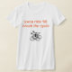 My overall review is that the T-shirt is nice, it fits true to size however the font is significantly smaller than advertised and you can't read it. The printing is unreadable and there is a strain to read it. It does not look like the advertised product. Maybe the shirt color is darker or a larger more visible font should have been used. Photos with and without flash and font is barely legible.