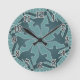 Clock featuring breakdance windmill maroon spiral pattern on blue background.