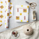 Cute hand drawn cartoon breakfast fried eggs, bacon and waffles whimsical gift wrap.