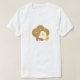 A shirt featuring a breakfast themed illustration of three waffles with butter, bacon, and eggs sunny side up garnished with an orange slice.