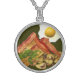Breakfast Landscape Bacon Eggs Sterling Silver Necklace